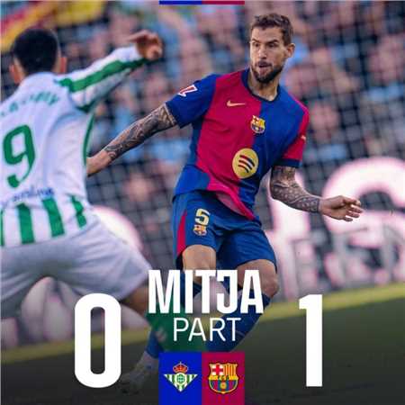 在西甲第16轮的比赛中,巴塞罗那在上半时过后客场1-0领先于皇家贝蒂斯,莱万多夫斯基开场第39分钟门前推射打破场上僵局。